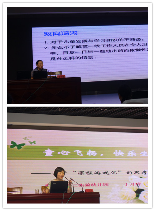 17日上午,通幼虹西分园的胡霞园长的讲座给老师们耳目一新的感觉,UME网络互动平台的运用与老师们开展了有趣的互动,同时了解了一线教师对于幼儿园环境创设的理解。随后,有针对性地分享了短短一年的时间里通幼虹西分园的实践积极。并通过大量的图片和实例详解了环境创设的分类、班级区域环境创设的原则及各区域的设置要点、材料分类等内容,丰富的理论知识结合生动具体的案例,引导老师们进行深入的思考,为幼儿园环境创设的进一步优化提供了切实有效的指导意见。