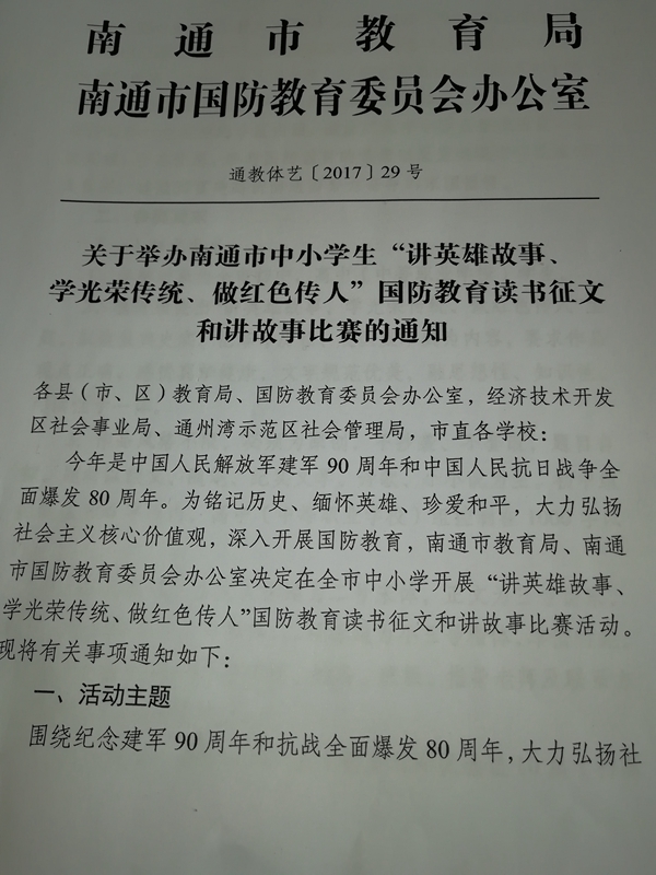 关于举办中小学生“讲英雄故事、学光荣传统、做红色传人”国防教育读书征文和讲故事比赛的通知