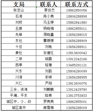 移动公司各支局联系人