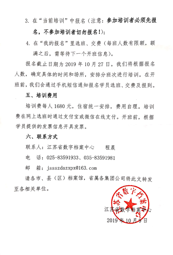 现将江苏省数字档案中心《关于开展档案业务初级培训班的通知》转发给你们。如有意参加,请联系省数字档案中心报名。