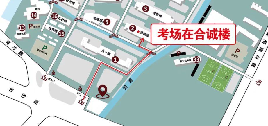 注:岗位代码2、4、5、7、8、9、10、11、13的考生在合诚楼二楼最东侧待测室1集中;岗位代码1、3、6、12、14、15、16、17、18的考生在合诚楼三楼最东侧待测室2集中。