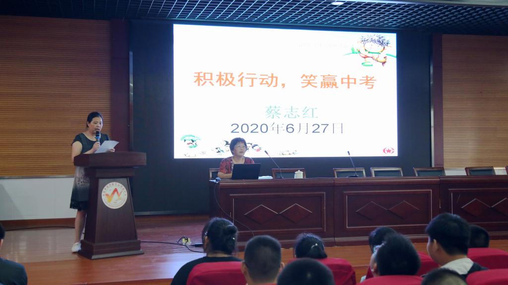 在2020年中考即将来临之际,为使初三学生能够轻松备考,做好疫情防控背景下应考的心理准备,6月27日下午,文山初中为初三学生举办以“积极行动,笑赢中考”为主题的心理辅导讲座,助力2020年中考。本次讲座由学校教导处主任、初三年级主任翟秦霞主持,江苏省通州高级中学心理健康教育教师蔡志红主讲。蔡老师是教育心理高级讲师,国家二级心理咨询师,南通大学心理健康教育专业学位硕士研究生指导教师、江苏省优秀家庭教育指导者、第九届感动南通教育人物。