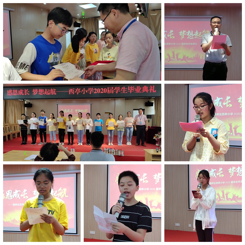 7月8日,初夏微凉,天空淡墨如画。西亭小学和正楼三楼报告厅里掌声阵阵,乐声回荡,洋溢着一片欢乐祥和的气氛。全体六年级师生齐聚这里,隆重举行以“感恩成长,梦想起航”为主题的2020届学生毕业典礼。八点四十分,主持人宣布典礼正式开始。