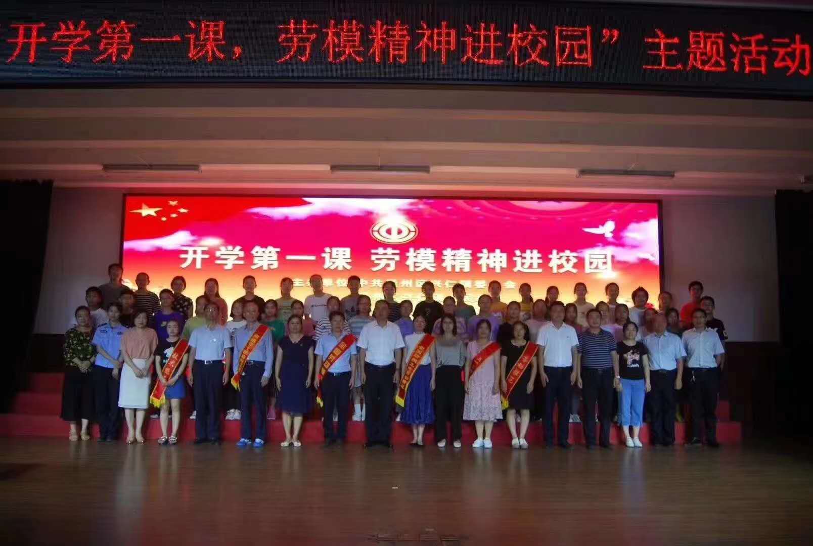 来自通州区各条战线上的陈华祥、朱安兵、周纹纹等6位劳动模范、工匠和技能选手身披红绶带、胸佩奖章,在全场热烈掌声中走上主席台,与师生们分享他们在各自岗位上爱岗敬业、争创一流的创新历程,分享他们淡泊名利、甘于奉献的闪光亮点,分享他们在疫情防控和复工复产中的模范事迹。全国劳模、全国创新能手陈华祥将全国劳动模范的奖章和由中共中央、国务院颁发的全国劳动模范证书带到会场,与同学们进行分享,讲述了自己先后获得多项荣誉称号时激动的情景,全场多次以长时间热烈的掌声向他祝贺。初一年级学生代表徐宝尔同学说:“全国劳模陈华祥攻克技术难关的事迹,给他留下非常深刻的印象。我们现在不但要好好学习,还要培养自己热爱劳动的良好习惯。”兴仁中学校长陈春雷发言时说:“劳模走进校园,尤其是在秋季开学的典礼上分享劳模事迹,让‘劳模精神’在同学们心中生根发芽,功在当今,利在终身,意义重大。”区总工会副主席徐浩兵指出:“开学第一课,劳模精神进校园活动是劳模事迹宣传的创新。我们将进行总结,不断创新、完善、推广这一宣传形式,让劳模精神在通州大地生根、开花、结果,让更多人优秀职工走进劳模行列。”
