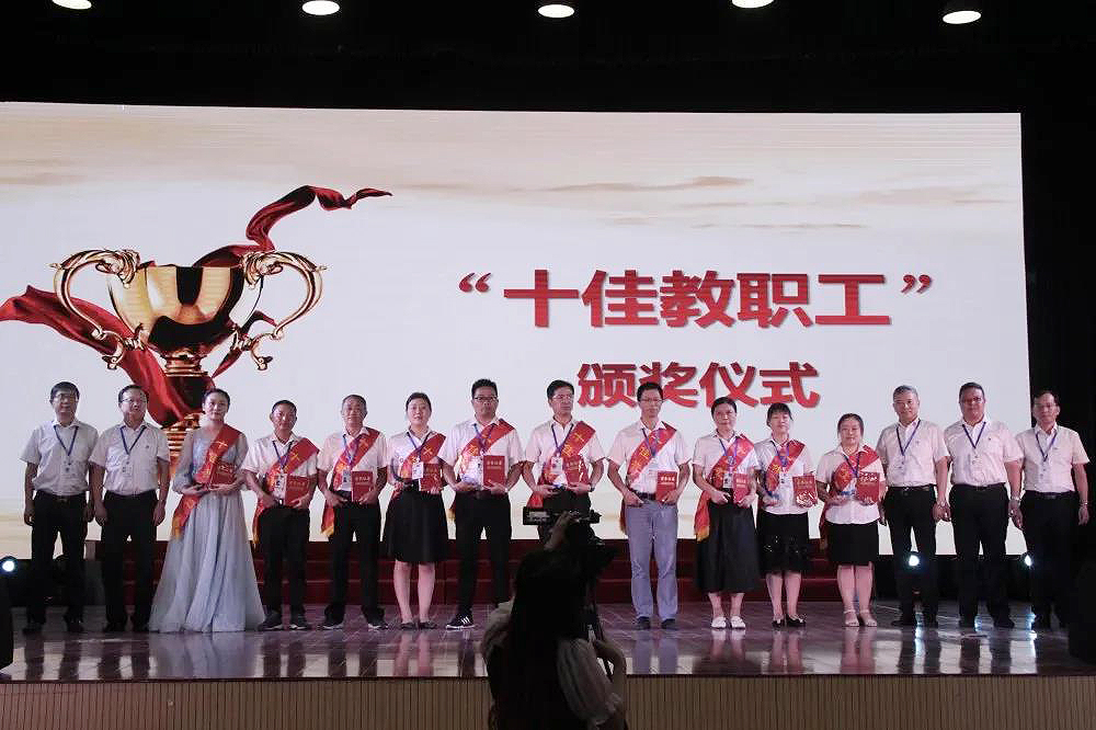 庆祝活动中,举行了2019-2020学年度第二学期校“十佳教职工”颁奖仪式以及老同志光荣退休仪式。以专业院系部为单位,由各院系部负责人领誓,举行了“立德树人,奋进担当”教职工宣誓仪式。