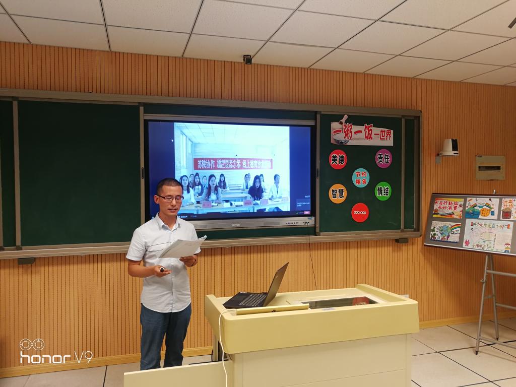 观摩了班会课后,由西亭小学徐国清主任介绍了学校围绕“杜绝舌尖上的浪费”主题开展的系列活动。