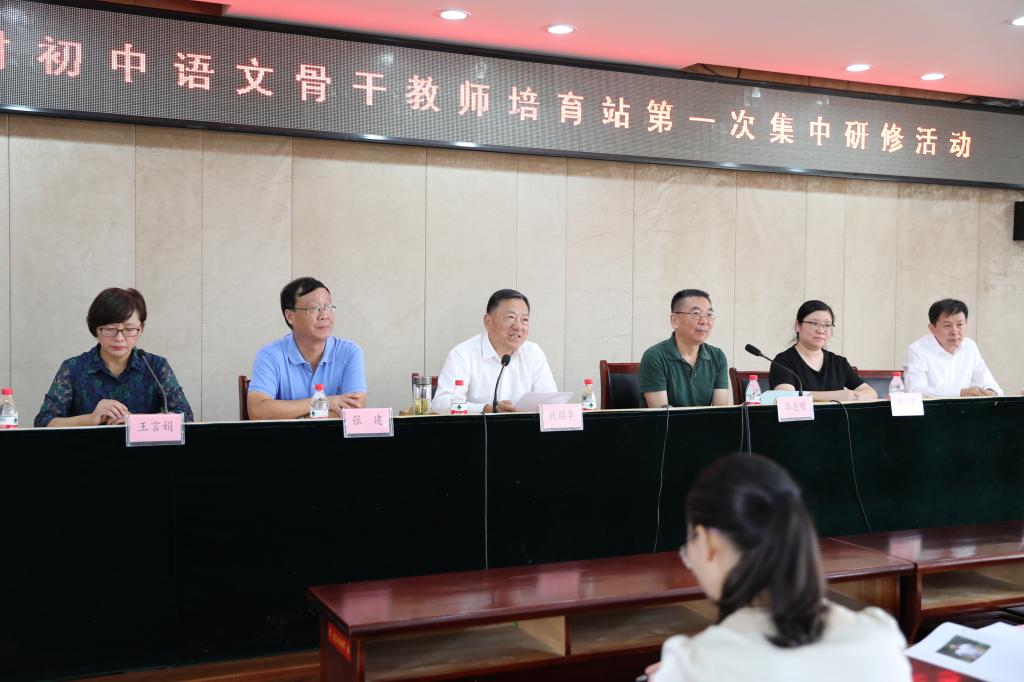 中秋时节,秋风送爽,丹桂飘香。9月29日,南通市第五期乡村初中语文骨干教师培育开班典礼暨第一次集中研修活动在育才中学举行,南通市中小学名师培养导师团副团长、省语文特级教师郭志明,南通市初中语文教研员、省语文特级教师李凤,通州区教体局副局长钱国华、人事科科长邢霞、育才中学校长张建等出席了开班典礼,来自如皋、海安、如东、海门、启东和通州等南通六县市区乡村初中的培育站成员,丁卫军名师工作室成员以及育才中学语文组全体教师全程参加了活动。