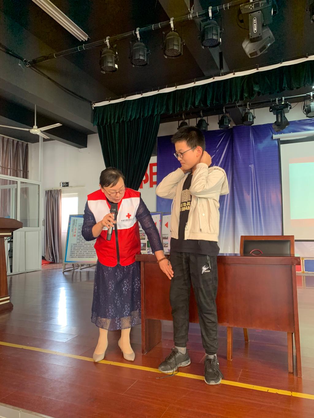 然后,老师讲解了红十字运动的起源,红十字运动起源于战地救护,目的是把知识普及到每个人的心中,用所学知识帮助施救之人,挽救生命,减轻伤残。
