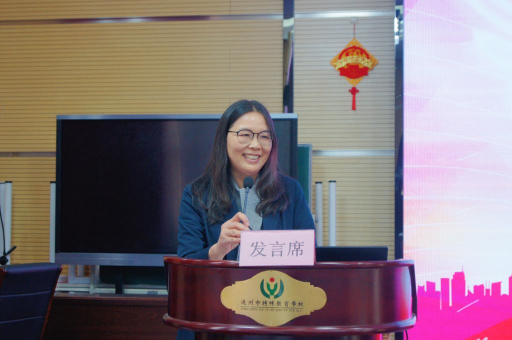 通州区特殊教育学校陆灵俊校长主持会议并介绍了会议的具体流程,宣布了校长(园长)融合教育工作汇报的顺序安排。通州区教育体育局副局长胡清华讲话。胡局长指出,通州区教体局从2014年开始陆续在全区范围内建设融合教育资源中心,根据特殊需要孩子的障碍特点和发展能力,采取多元化的安置方式,实行适宜的融合教育,为各镇街的特殊需要孩子提供服务。今天的会议旨在全面推进融合教育,加强普通学校融合教育资源中心建设,发挥融合教育资源中心在区域普通学校中的示范和引领作用。各位校长(园长)要加深对融合教育工作时代紧迫感的认识,精准施策,稳步落实,不断推进我区融合教育工作高质量发展。