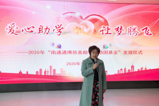 最后南通通博公司公会主席郭莉女士也对捐赠活动进行致辞,表达了一直以来公司对广大受困学生的学习和生活的关心,并表示这样的捐资将一直持续下去。