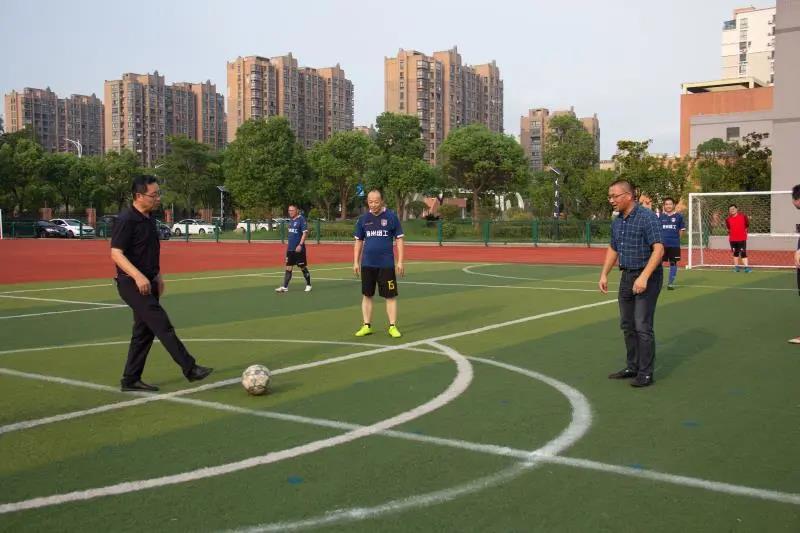 学校教工足球队与区机关事业足球爱好者进行了一场别开生面的足球友谊赛。瞿德良校长与季有林副校长饶有兴致地为友谊赛开球。球场上的飒飒英姿与拼搏精神展现了高小人积极向上的生命姿态与永葆青春的奋斗活力。