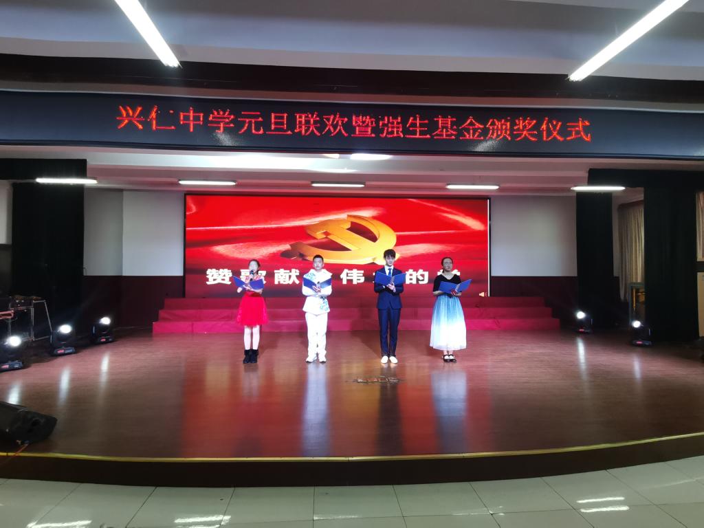 12月29日下午,兴仁中学举行迎元旦联欢暨“强生基金”颁奖仪式。参加这次仪式的有通州区教体局副局长胡清华、南通剑桥输送设备有限公司董事长黄翔、兴仁中学领导班子、教师代表及初一年级全体同学。