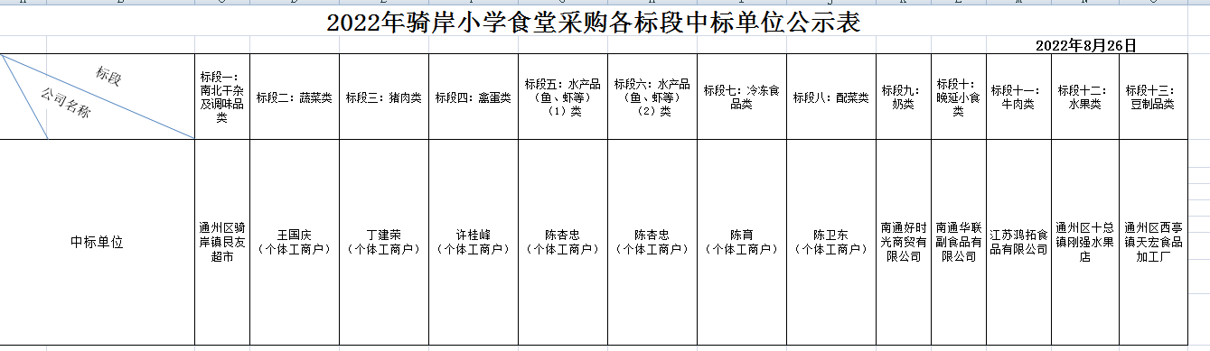 以上供货商为南通市通州区骑岸小学食堂供货,履约供货期为:签订合同开始至2022年10月31日