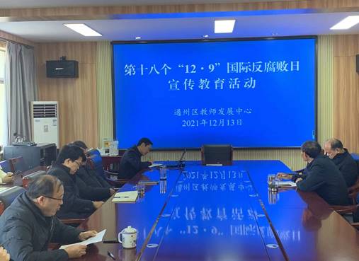 为深入学习贯彻党的十九届六中全会精神,纪念第十八个国际反腐败日,12月13日,区教师发展中心召开全体研训员会议,围绕“培育廉洁理念,弘扬清风正气”活动主题,开展“12·9”国际反腐败日宣传教育活动。