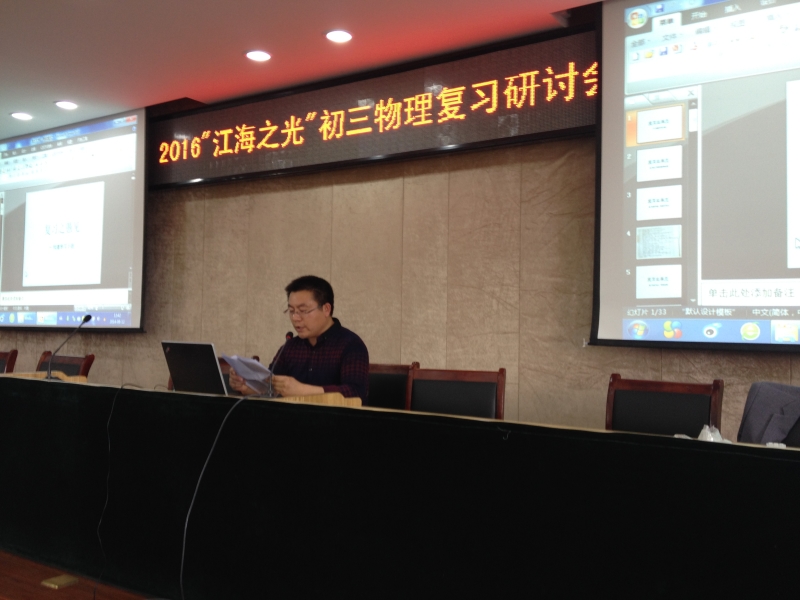 2016年5月4日上午,通州区2016届江海之光初三物理复习研讨教学培训活动在通州区育才中学举行。来自全区27所初中的一百多名初三物理老师参加了研讨培训活动。
