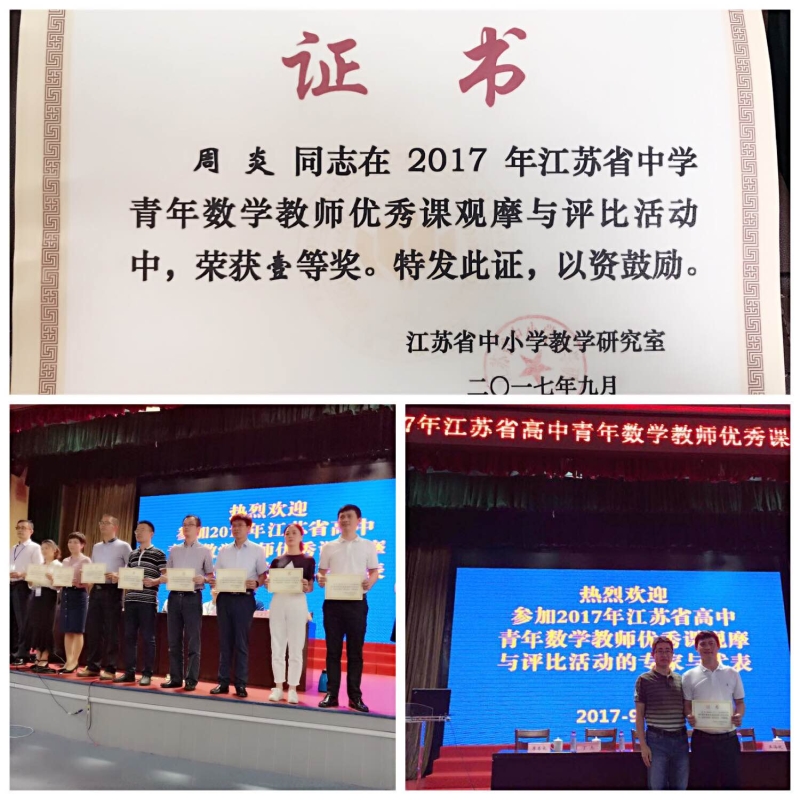 平潮中学周炎老师喜获省高中青年数学教师优秀课评比一等奖