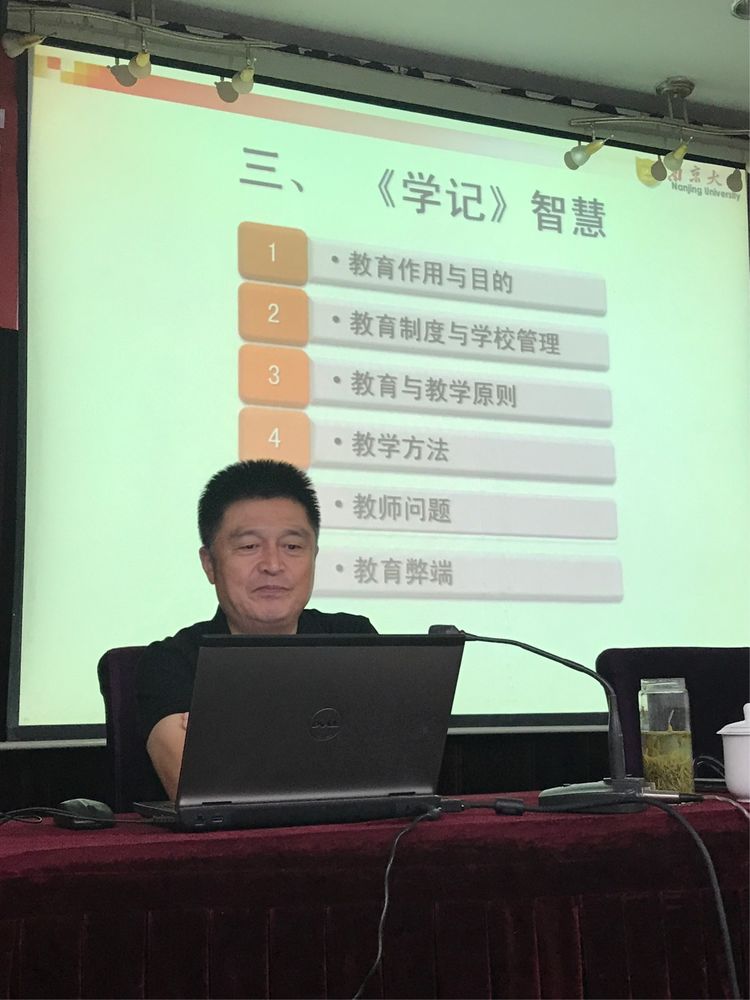 王运来教授结合《学记》,谈了该书的几大智慧:一是教育作用与目的,教育有必要性,且有无限可能性;二是教育制度与学校管理,其中的初学制为七年,和今天的小学六年接近;三是教育教学原则,比如教学相长、启发性在今天依然有其科学性;四是教学方法主张问答法、讲解法、练习法,反对外部的强制,主张学生的自学领悟;五是教师方面要"听语"知识渊博、技巧成熟,要"博喻"注重引导,激发学生想象力;六是指出了某些教育弊端。其实何止《学记》,《论语》中也有很多关于教育的论述,比如"不愤不启,不悱不发""举一隅不以三隅反,则不复也"等等。学员体会是:要想探求教育的理论和规律,在读一些西方的教育专著之前,不妨先研究一下古人的真知灼见,毕竟这些流传下来的经典更符合中国特色。