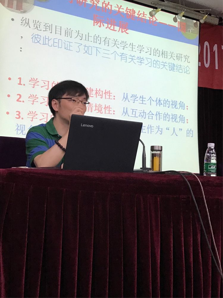 吕林海教授的讲座听得有些费劲,因为他的研究太高了、太深了,但学员认真耐心地听完以后,觉得他的讲座给人的启发很多。他的讲座名字很大气,是《学生学习的国际研究进展与中国本土视野》,其实内容很接地气,很实用,主要紧扣三大方面:一是教学的知识要形成结构,并教会学生主动建构知识的能力;二是任何学习要有社会情境性,这样的学习才是最自然、最高效的,理解也是最深刻的,吕教授举的是美国贾斯伯的问题解决情境片断,让人联想到的就是小学语文中的情境教学,英语中的对话表演等,可以说任何学科都可以创设一定的社会问题情境;三是学习的协同----整合性,人的学习不仅仅是大脑单独参与的结果,而是身体、情感和认知的协同整合的结果,所以我们要懂点脑科学、懂点文学艺术、懂点学生心理,这样的教学才能做到水乳交融,水到渠成。
