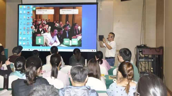 他以生动的案例展示实施现代技术进行授课的精彩片段,讲解了实用的文字、图片、视频、音乐等处理软件及其使用方法,介绍了动画的制作和PPT中平滑转换的精彩妙用以及3D图形的使用方法,展示了新奇、好用的教育APP带来的沉浸式学习体验。