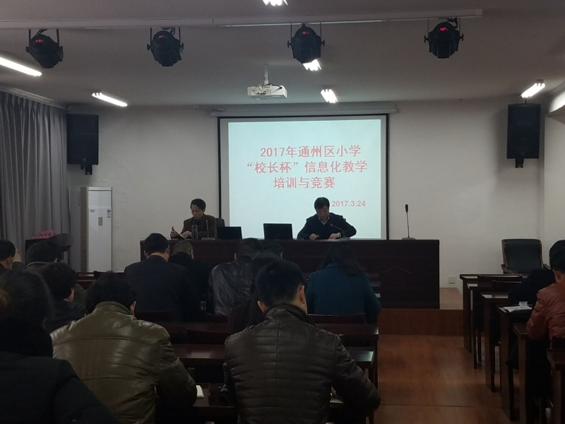 由通州区教师局主办、区教师发展中心承办的2017年全区小学“校长杯”信息化教学培训与竞赛活动于5月8日在区教师发展中心降下帷幕。为了进一步提高我区义务教育阶段教育行政管理人员信息化教学理论水平及现代教育技术应用能力,深入开展信息技术与学科教学的深度融合研究,促进全区教师创新教学理念和信息化教学素养的提升,根据2017年区教育局工作计划安排,组织了这次活动。来自全区各小学校长、副校长共41名,参加了本次培训和竞赛。