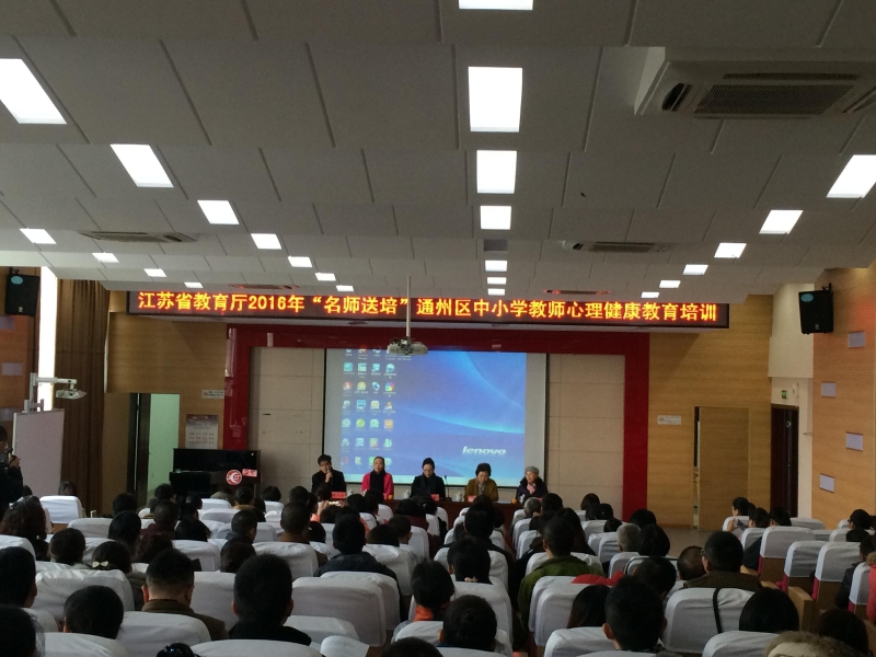 11月24日至26日,由江苏省教师培训中心主办、通州区教育局承办的江苏省教育厅2016年“名师送培”通州区中小学教师心理健康教育培训活动在通州区实验小学成功举行。来自全区中小学的专、兼职心理健康教育教师、优秀班主任代表、优秀教师代表共210人参加了培训活动。
