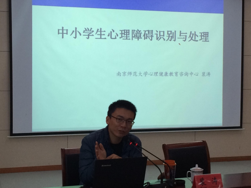 儒雅、潇洒的裴涛老师教授大家如何识别各种心理障碍,在互动中让学员掌握了很多处理方法,不仅对专业教师,对非专业教师尤其是班主任也具有很强的实践操作意义,可以在学校层面及时发现心理问题严重的学生并进行心理干预,预防校园危机的发生。