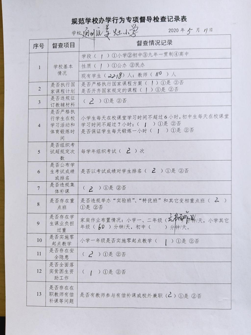 5月11日上午,责任督学薛新华校长来到姜灶小学对学校进行义务教育规范办学专项督导检查。