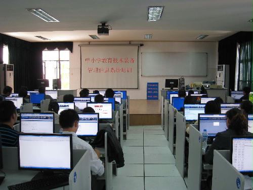 为进一步推进学校教育装备的账目、资料以及实验教学的规范管理,9月21日我区按省市要求在金沙中学完成了中小学教育技术装备管理信息系统培训工作。全区各中小学校的实验室教师、信息技术教师代表各一名参加了培训。区人民政府教育督导室主任、教育局党委委员王新荣,亲临现场看望了参加培训的教师,他要求参加培训的教师除自己学会用好,还要教会所在学校的相关人员,指导他们用好,要求各校严格按区教育局提出的时序进程,通过一个月左右时间的努力完成好各类仪器设备的初期建账以及实验计划设定等准备工作,确保教育技术装备管理系统投入正常使用。