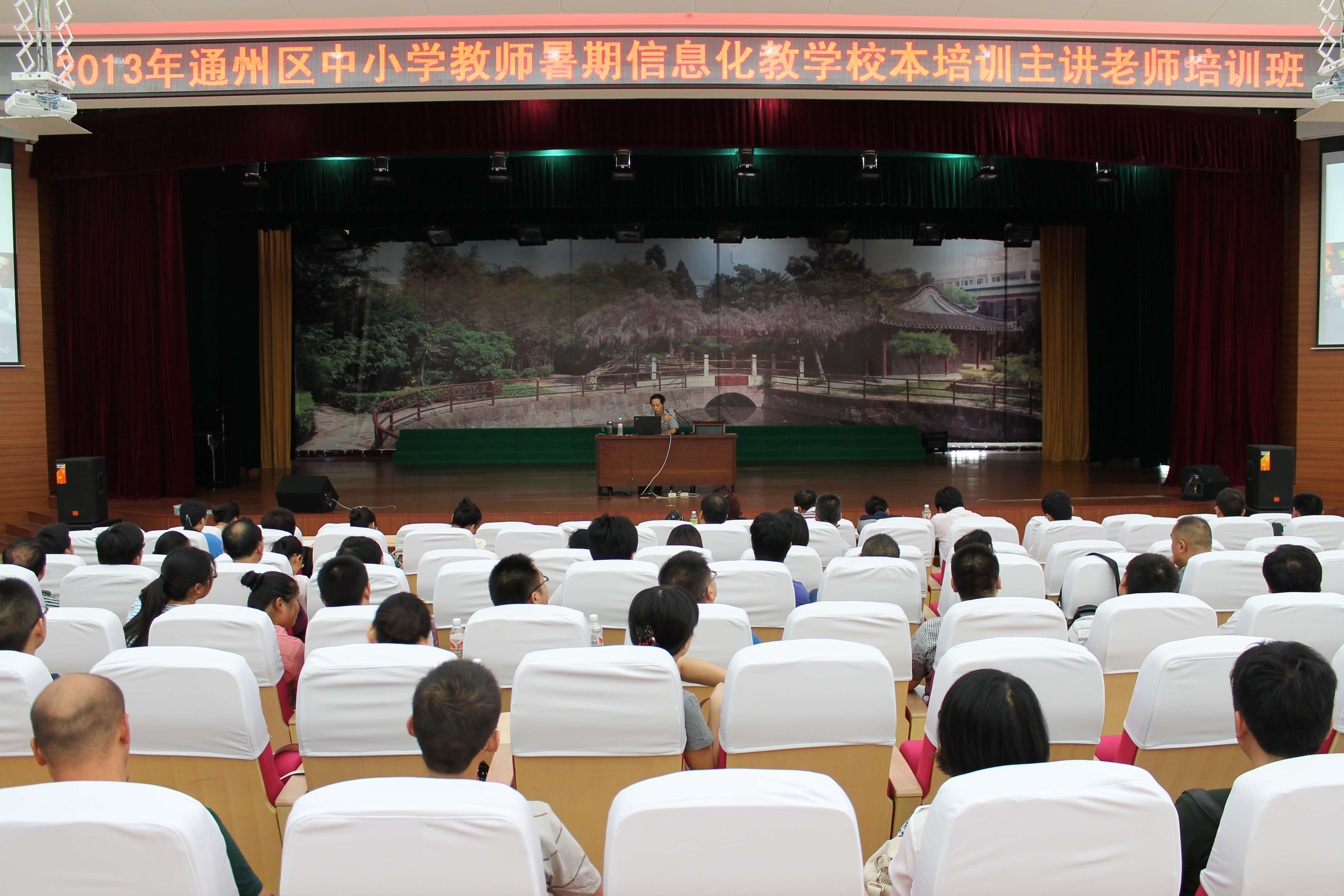 7月18日下午,2013年通州区中小学教师暑期校本研修(信息化教学)培训者培训班在区实验小学降下帷幕。来自全区各中小学、职中及幼儿园的100多位教师参加了培训。此次培训活动是根据市教育局和我区2013年中小学教师暑期校本研修的统一部署,旨在充分利用现有的学校信息化基础环境,为使广大教师能熟练使用电子白板,系统全面了解信息技术环境下的教学设计方法及教学资源的种类,独立建设教学资源等,有效提升全区中小学教师的信息素养,促进教师专业能力的发展。