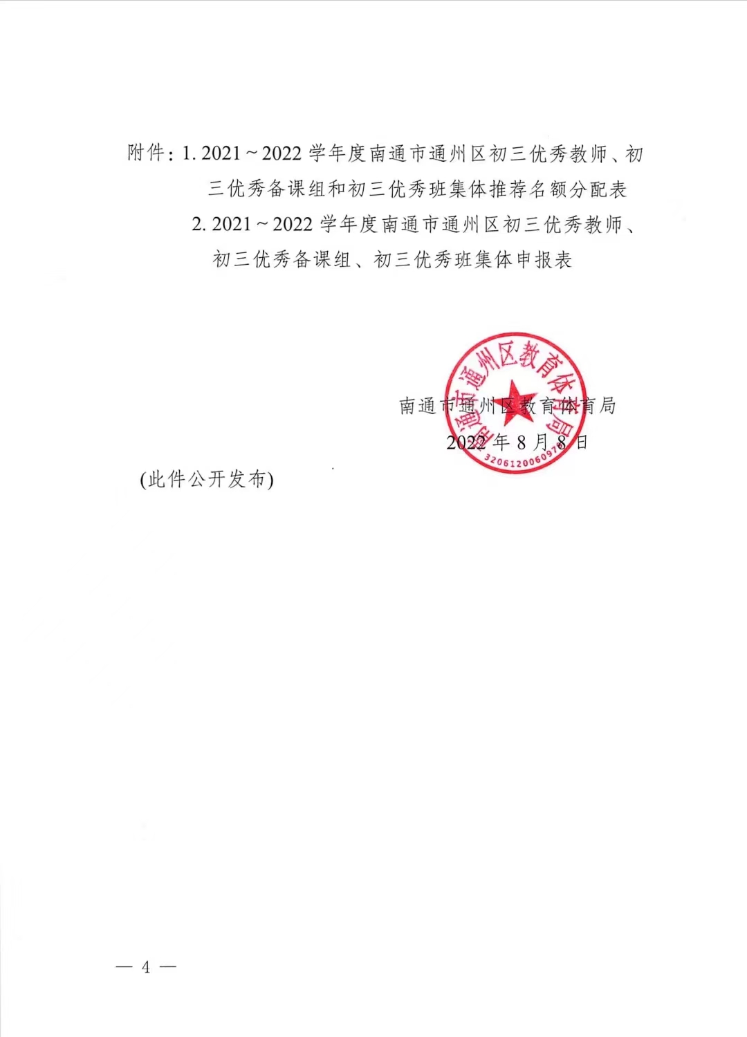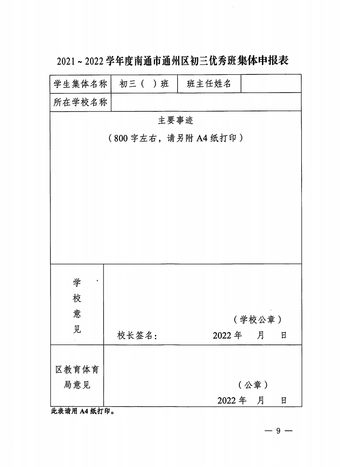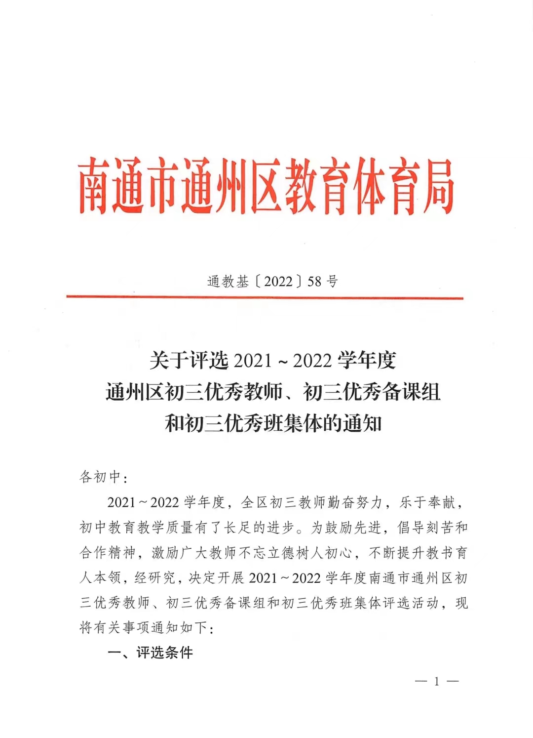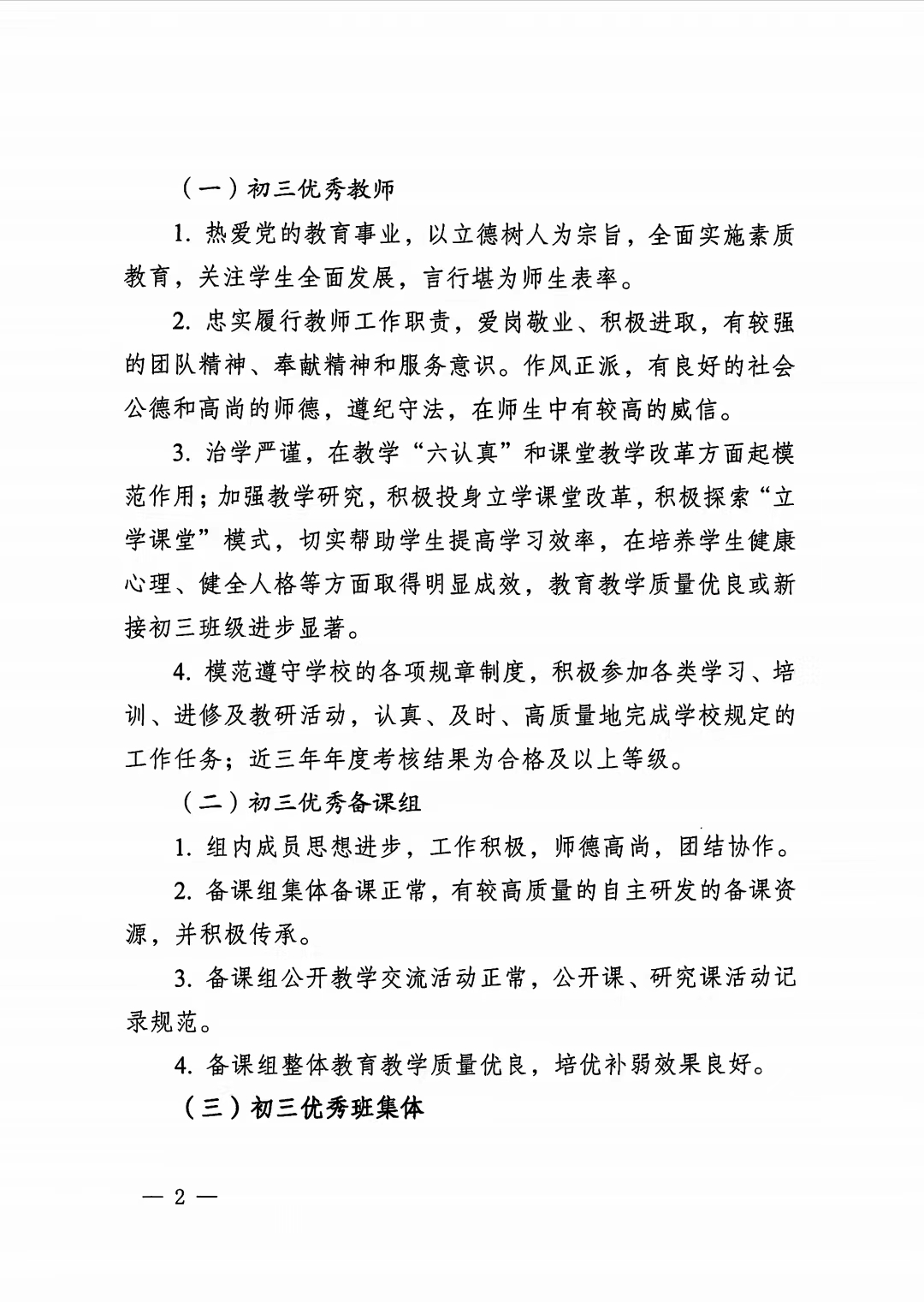 2021~2022学年度初三优秀教师、班集体、备课组长评选