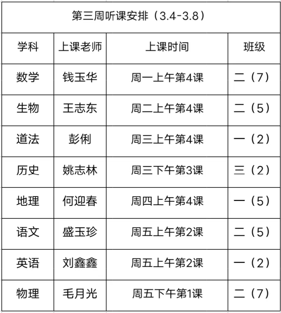 2023~2024学年度第2学期第3周听课安排
