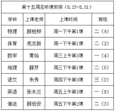 2023~2024学年度第2学期第15周听课安排