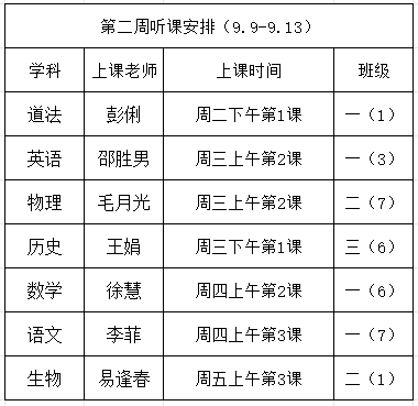 2024-2025学年第一学期第2周听课安排
