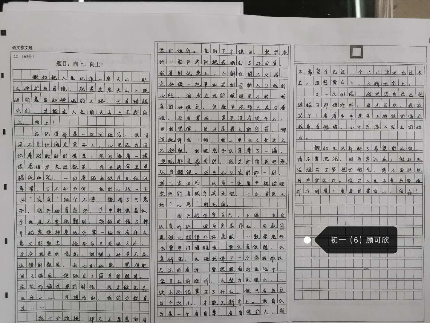 19-20下初一期末考试优秀作文《向上,向上》顾可欣【2019级6班】