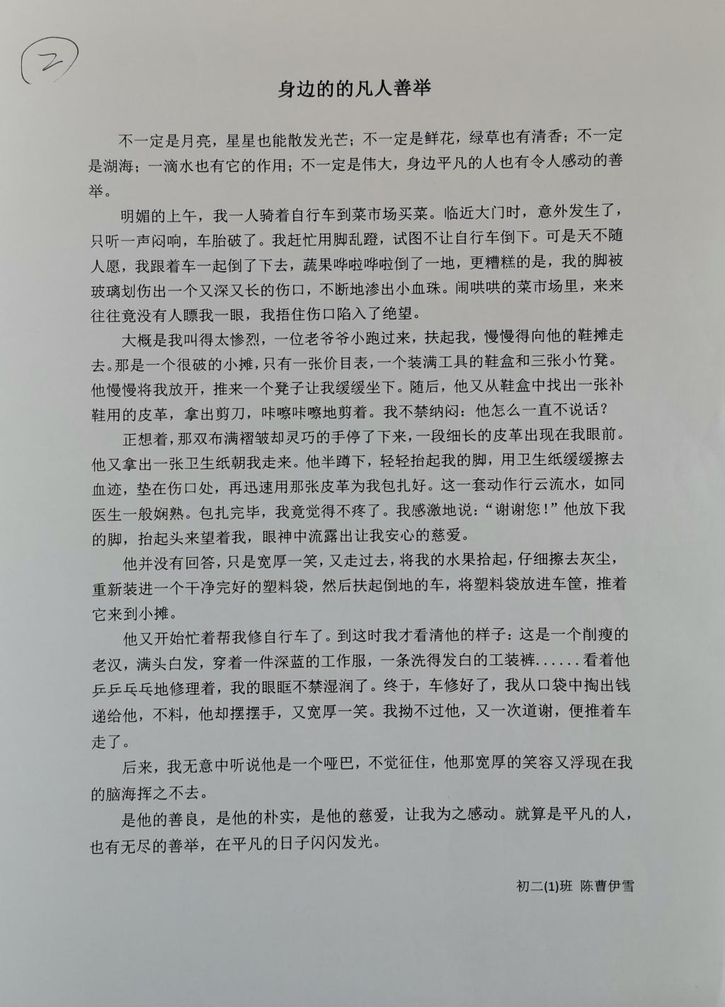学雷锋征文:身边的凡人善举2020级1班陈曹伊雪