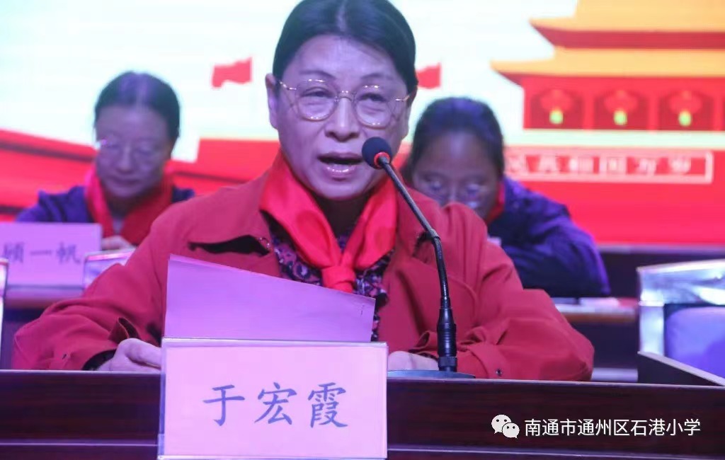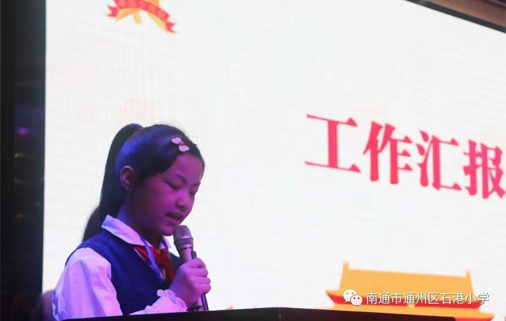 石港小学党支部副书记于宏霞主任为大会致辞。她希望辅导员老师们始终牢记党和人民的重托,继续发扬优良传统,做好榜样,关爱学生,为我校少先队员的健康成长倾注更多的心血;要深刻领会习近平总书记对少工委组织和少年儿童的殷切期望;认真学习党中央,少工委对未成年人思想道德教育和少先队工作的一系列安排部署,围绕工作中心,做好少先队工作,努力把星星火炬事业不断推向前进!