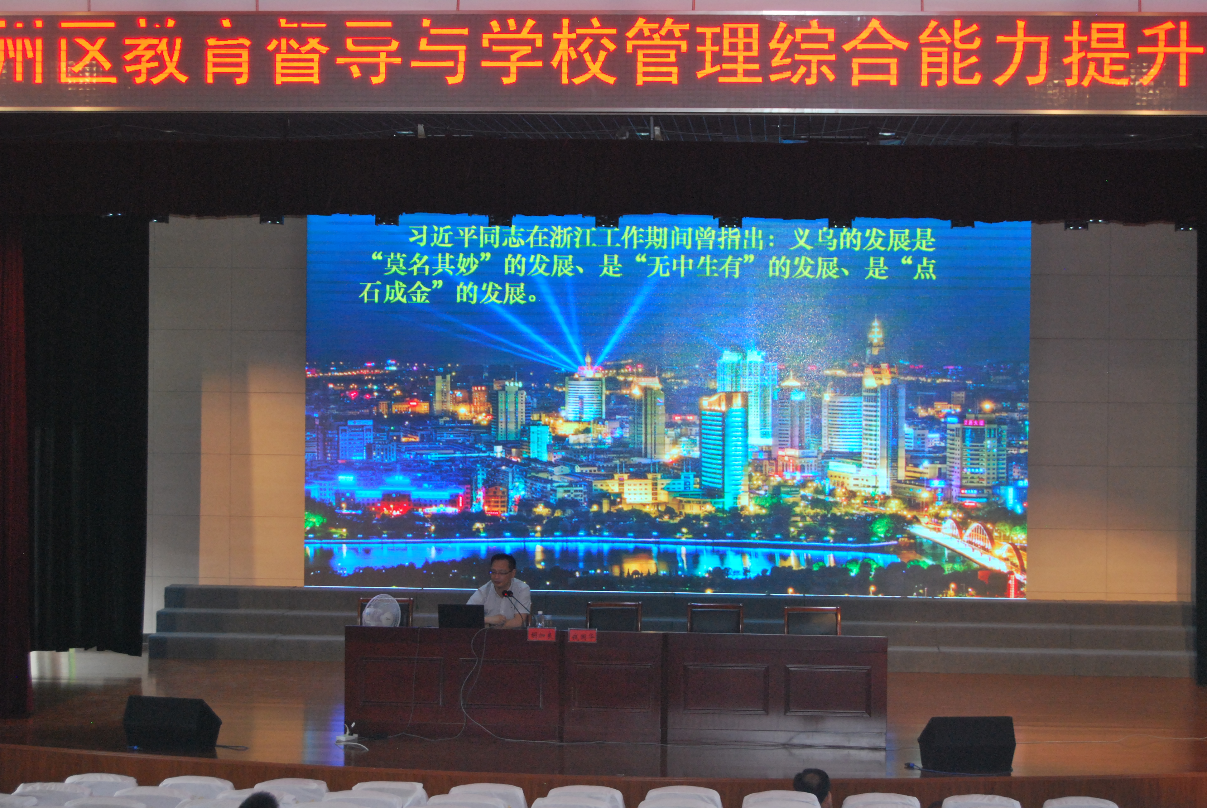 盛夏的七月,室外骄阳似火,室内热气弥漫。为全面贯彻落实《教育规划纲要》和《教育督导条例》,不断提升督导队伍、学校管理层的理论素养和专业水平,7月23日,通州区暑期教育督导和学校管理综合能力提升高级研修班在南通高新区小学知润楼四楼报告厅举行,来自全区的责任督学、各挂牌督导学校的校长(园长)、各校教育督导联络员以及督导室全体驻室人员共200多人参加了此次培训活动。