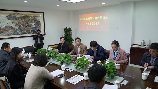 在环境优美的育才中学校园内,考察组对成片的银杏林、新建的榉树园和校训墙、设立的钢琴个人演奏小舞台所处处彰显的独特育人文化氛围表示由衷赞赏。育才中学招生、分班、收费一直是社会关注的热点问题,张建校长向考察组详细汇报了2017年秋季招生工作情况:严格执行招生规定,切实做好招生服务,认真把握时间节点,同时从严守纪律、服务群众、关爱学生三方面谈了招生工作的体会。市规划局通州分局副局长、区政府教育督导委员会委员、区政府督学朱雪平详细询问了学校的招生范围,对学校招生工作规范、有序、高效完成表示肯定,同时对学校招生工作的方法提出了很好的建议。考察组其他成员肯定了学校重视培养孩子良好行为习惯的做法。