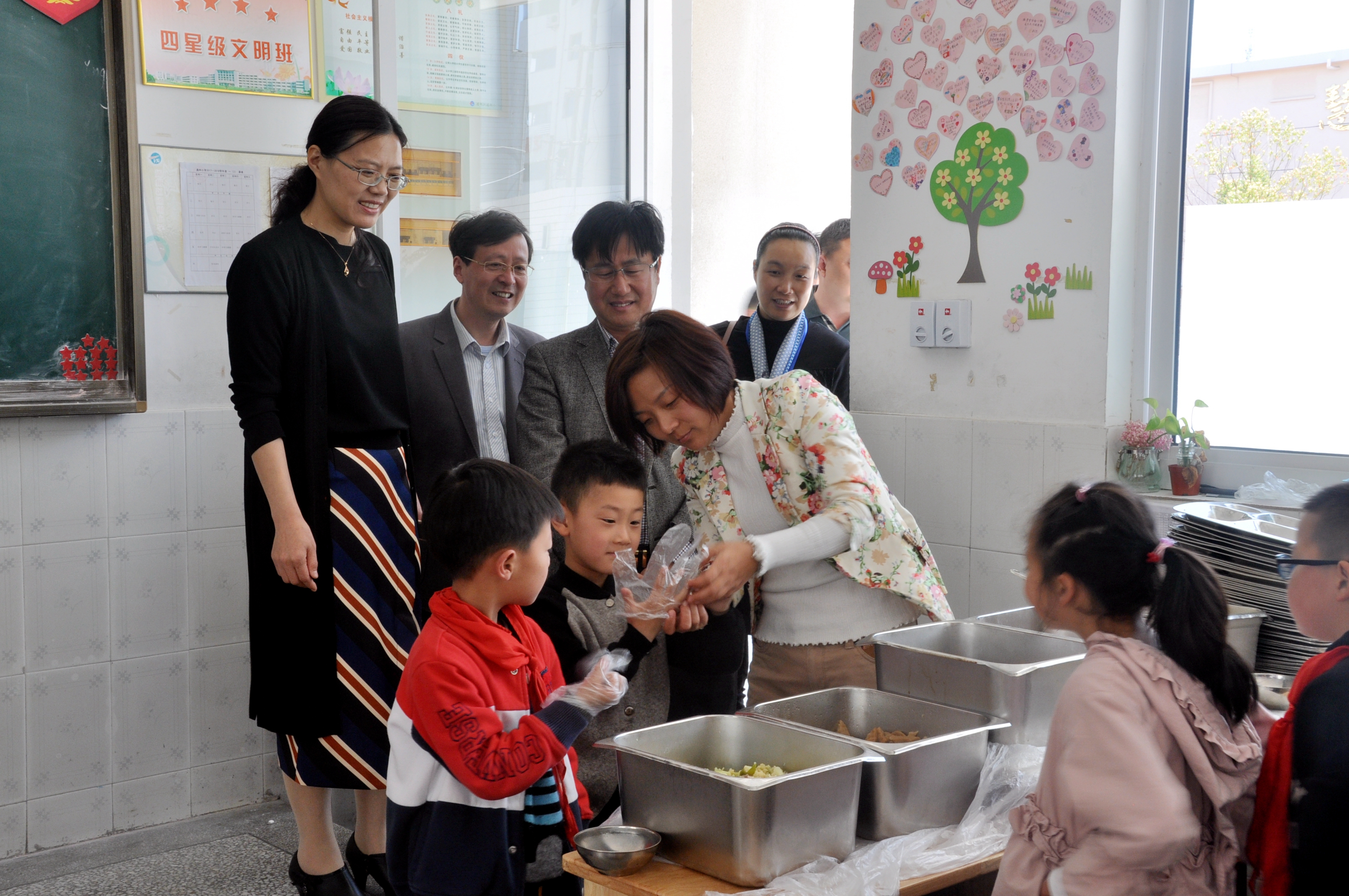 中午,督委会领导现场了解了学生的用餐情况。一年级孩子在老师的指导下,训练有素地排队、分餐、用餐。孩子们井然的就餐秩序,文明的用餐习惯和自主的管理能力给督学留下深刻的印象,督委会领导还在食堂吃了一顿原汁原味的学生餐。