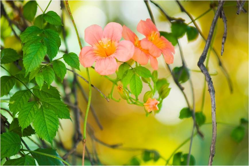 7-9月份,凌霄开花,凌霄花是什么样的呢?试着把花画下来。