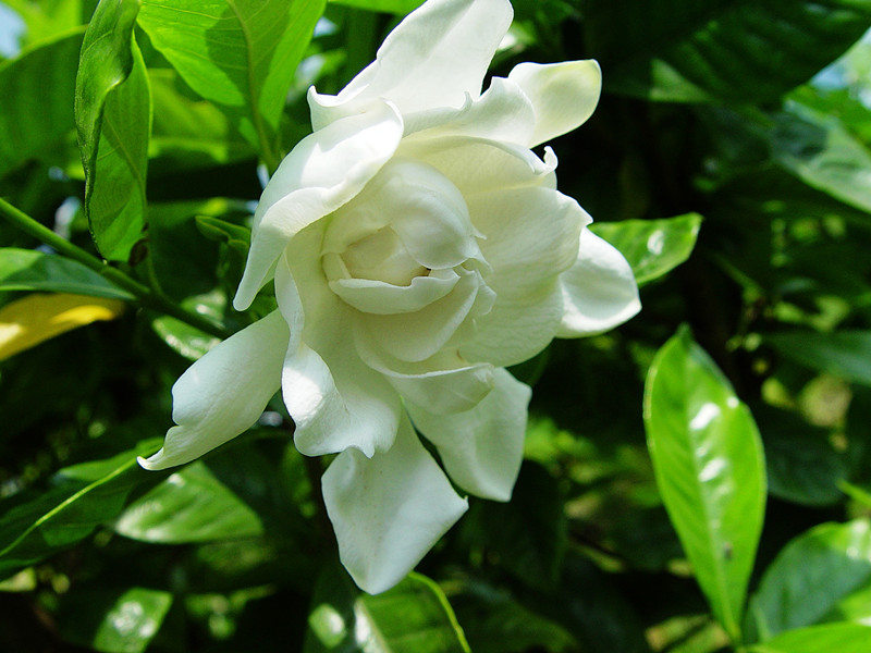 栀子花又名栀子、黄栀子,为龙胆目、茜草科、栀子属的常绿灌木,喜欢温暖湿润和阳光充足的环境,较耐寒,耐半阴,怕积水,要求疏松、肥沃和酸性的沙壤土,原产于中国。栀子花枝叶繁茂,叶色四季常绿,花芳香素雅,为重要的庭院观赏植物。除观赏外,其花、果实、叶和根可入药,有泻火除烦,清热利尿,凉血解毒之功效。其花语是“永恒的爱,一生守候和喜悦”。