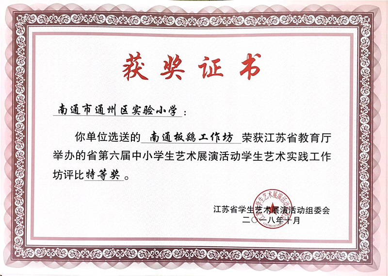 第六届中小学生艺术展演活动学生艺术实践工作坊特等奖