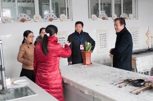 责任督学王铭锋到实验小学本部巡查剪纸教室,学校副校长蒋晓飞、张永飞、教导主任朱水平、政教主任夏汉美一起陪同检查