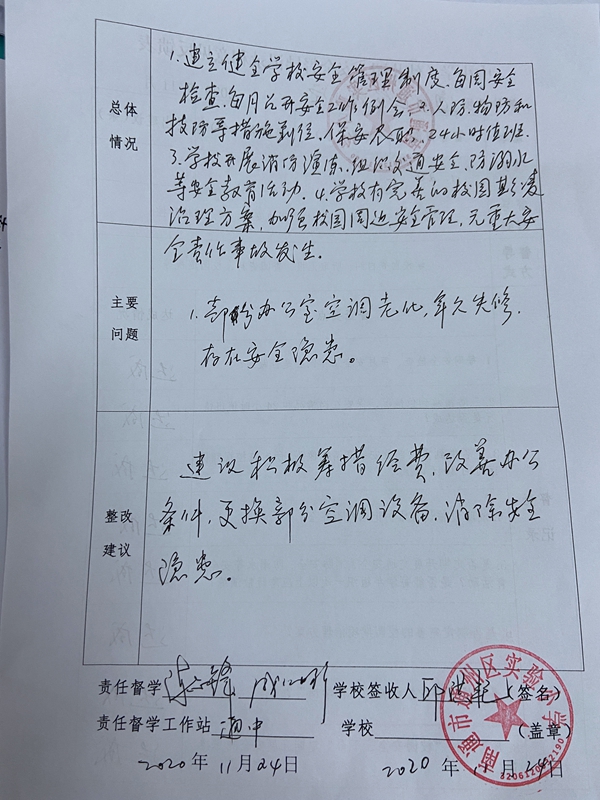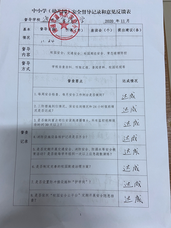 2020.11中小学安全督导记录和意见反馈表