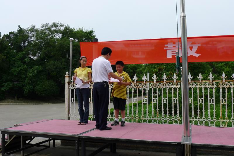 6月30日,我校在学校中操场举行隆重的散学典礼。在仪式中,瞿德良副校长为两位获通州区读书征文一等奖的学生颁发证书;蒋晓飞校长宣布了各类优秀学生名单;少先队大队总辅导员瞿卫华做了暑期生活指导,提供了“健康、学习、体验、安全、成长”等五个暑期生活套餐供全体学生选择。
