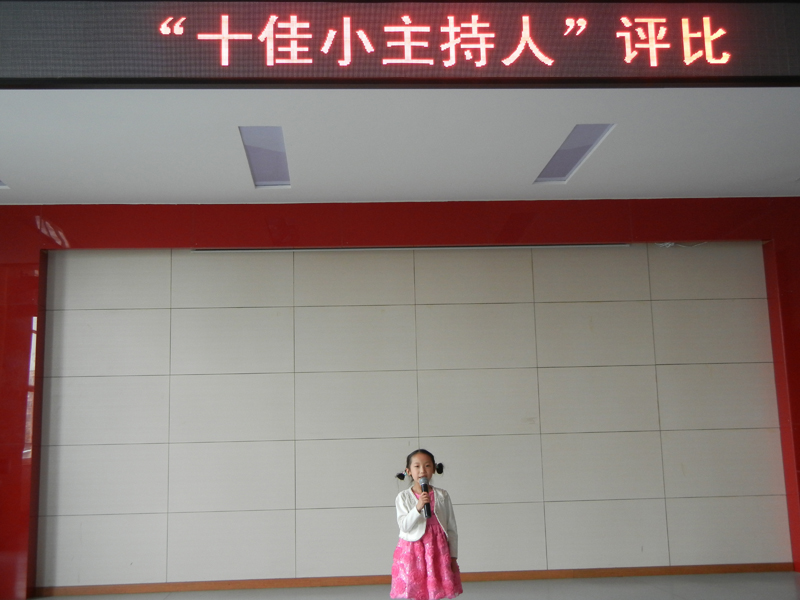 4月29日,来自一-五年级的近50名队员经过自主申报来到了“十佳小主持人”的比赛现场。经过竞选演讲和即兴话题演说两个环节,12名队员脱颖而出,成功当选为2015年“十佳小主持人”。(名单附后)
