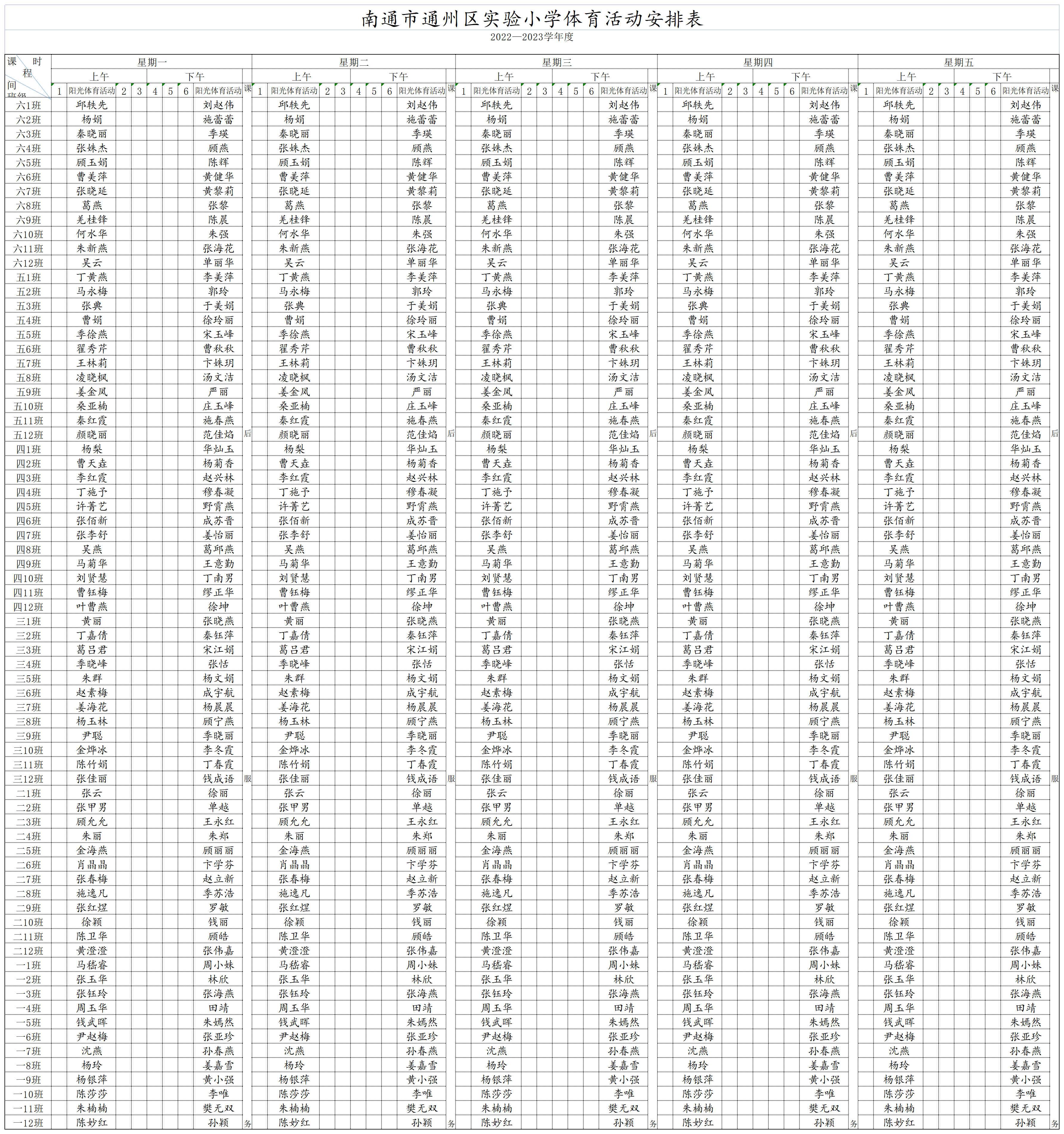 【通州实小】公示:南通市通州区实验小学2022-2023学年度体育活动安排表