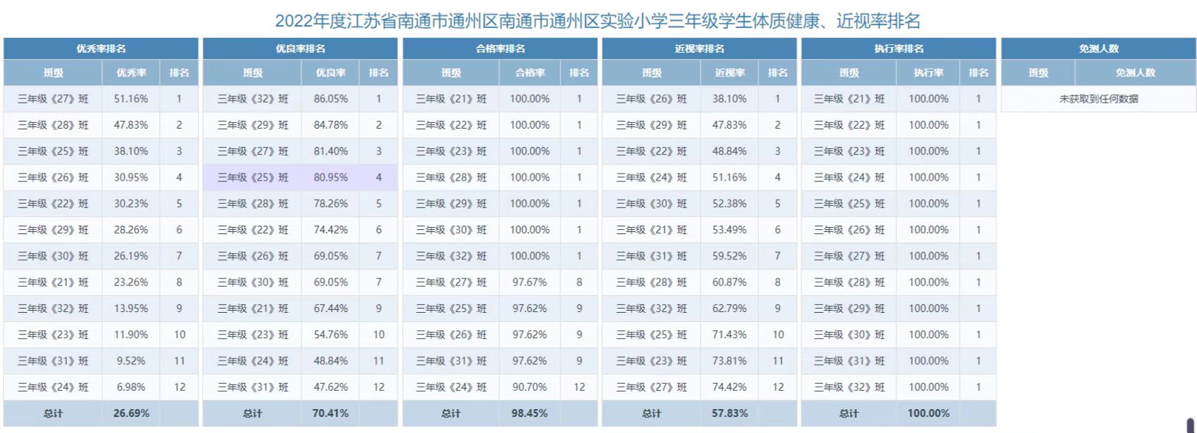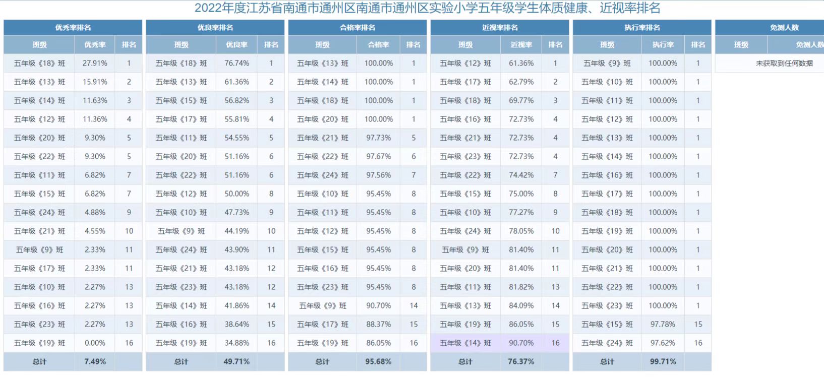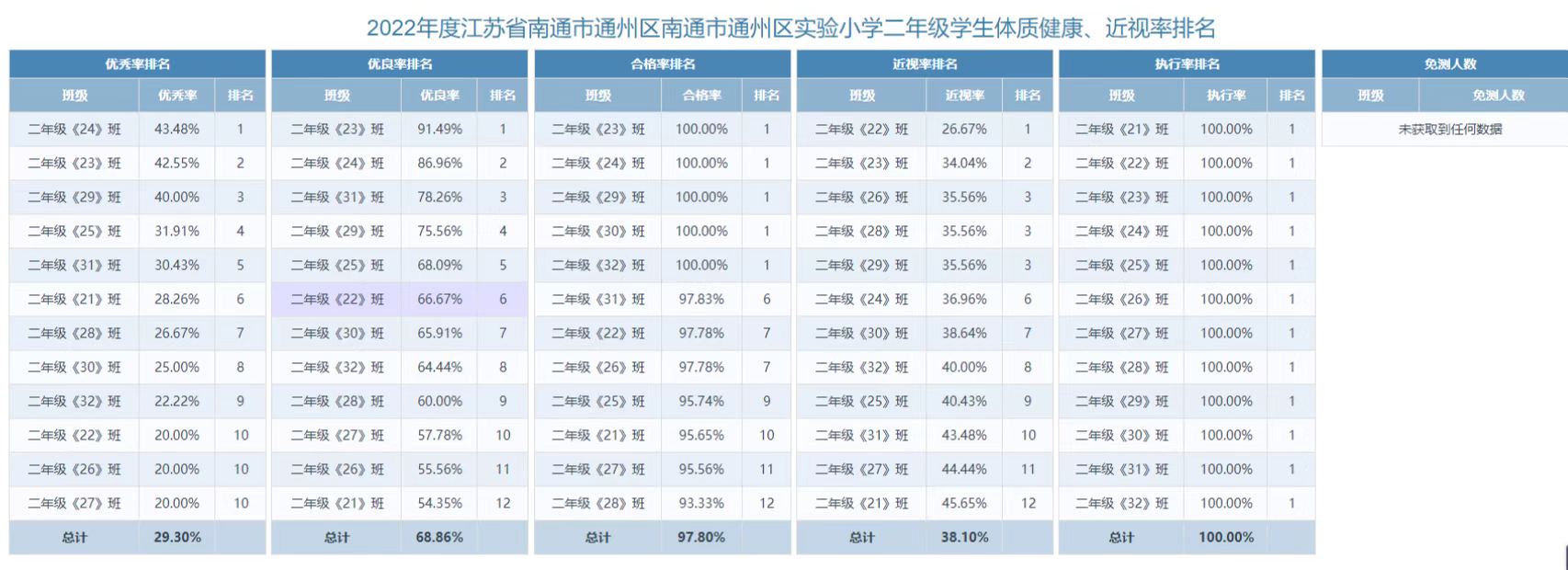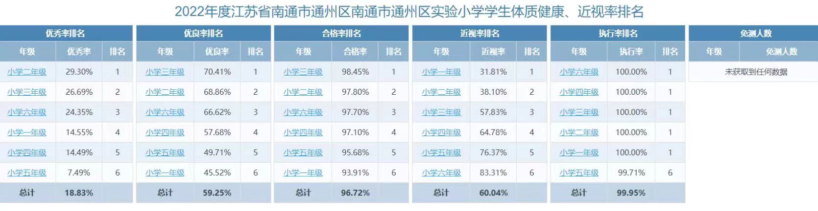 【通州实小】公示:2022年度南通市通州区实验小学学生体质健康、近视率排名