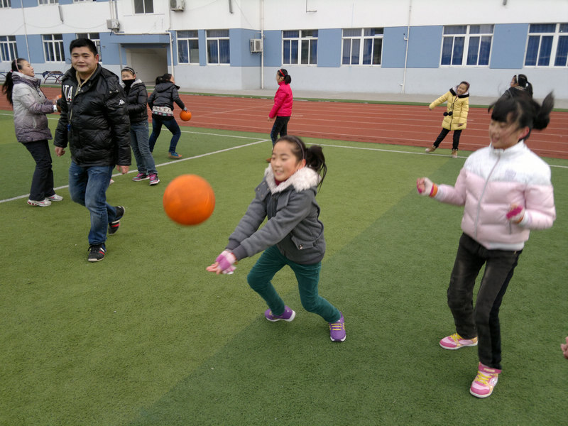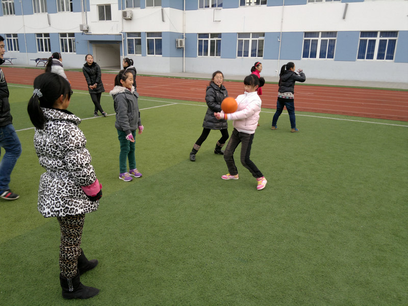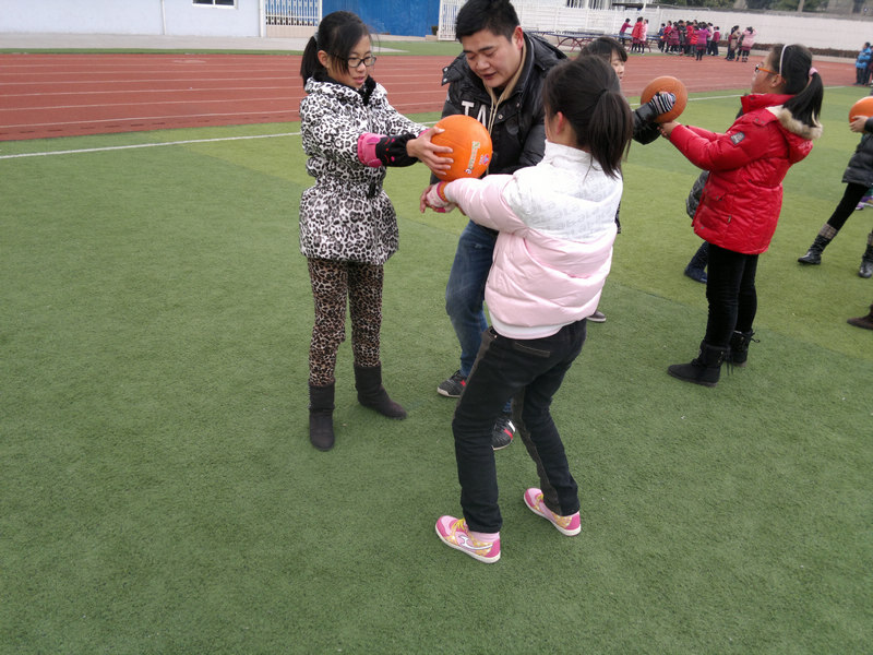 3.两人一组垫固定球游戏:两人面对面站立间隔1.5——2米的位置,一人双手持球(左右摆动),另一人判断球的方向用跨步方法去垫固定球,然后相互交换,让学生体验跨步垫球的动作方法。