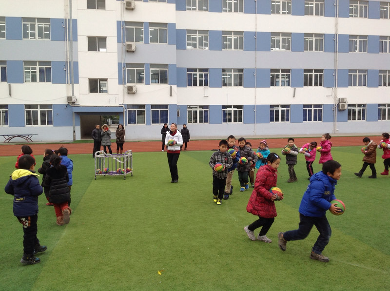 3、 游戏:在圈上玩头上、胯下传接球的游戏